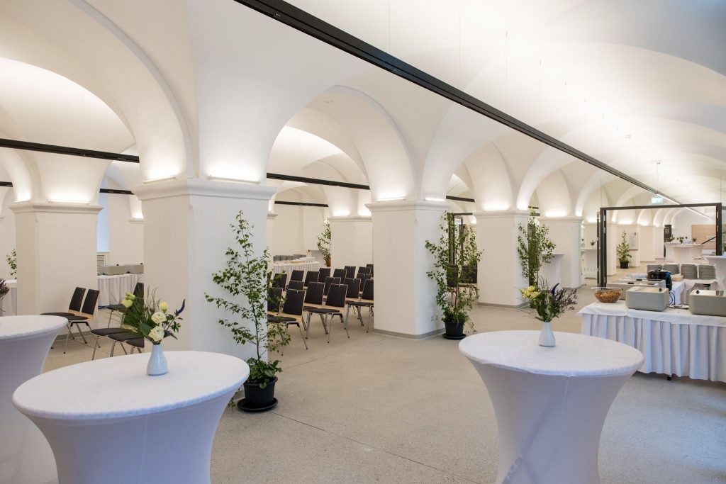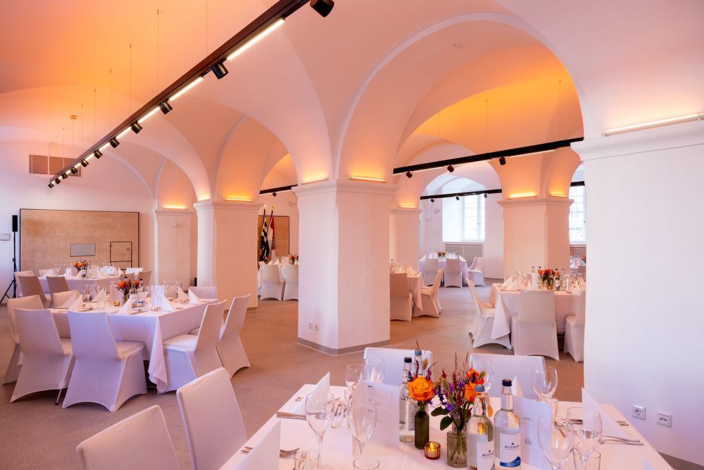 „Kempten városának az volt a kérése, hogy úgy ruházzuk fel a Kornhaus épületét a legmodernebb technikai megoldásokkal, hogy közben a történelmi miliő se szenvedjen csorbát” – magyarázta Klüpfel. „Olyan világítási és hangtechnikai megoldásokat kerestünk, amelyek ebben a szellemben működnek.” A földszint boltíves mennyezete, monumentális oszlopai és építészeti szimmetriája kihívást jelentett a különböző zónák meghatározása és az adott atmoszférát tiszteletben tartó AV-technika integrálása szempontjából. A nyitott tér egyszerre több funkciót is ellát: egy előcsarnok, egy bár és vendéglátóhely, valamint egy kiállítási, illetve múzeumi zóna is helyet kapott benne. A felhasználási sokszínűség mind a világítás, mind a hangelosztás tekintetében rugalmasságot igényelt a tervezés során.