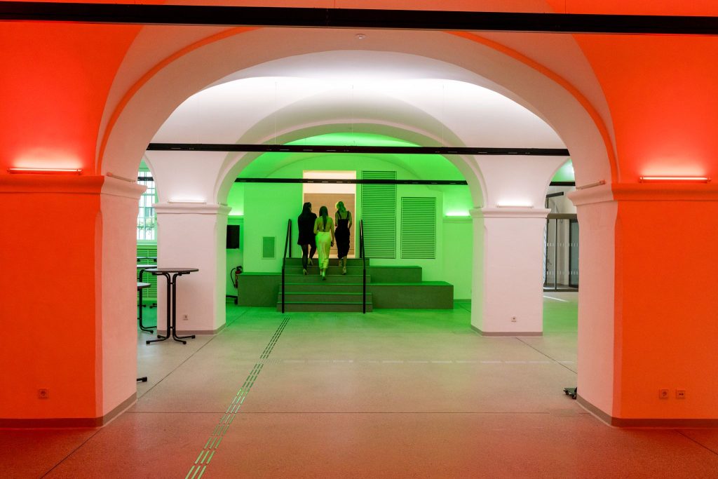 Az eredmény egy átfogó hang- és világítási ökoszisztéma, amely zökkenőmentesen képes váltani az egyes funkciók között – legyen szó kulturális kiállításokról, hivatalos fogadásokról vagy nyilvános összejövetelekről. A RAIL rendszer közvetett RGBW világítása kiemeli a boltíves mennyezetet, miközben a rugalmasan alkalmazható spotfénnyel tovább fokozható a hangulat, illetve könnyebben kijelölhetők az egyes zónák. A K-array támogatásával hangolt hangrendszer minősége minden elvárást felülmúl: egységes, kiváló hangzást és tökéletes lefedettséget biztosít, anélkül, hogy túlzsúfolná a teret.