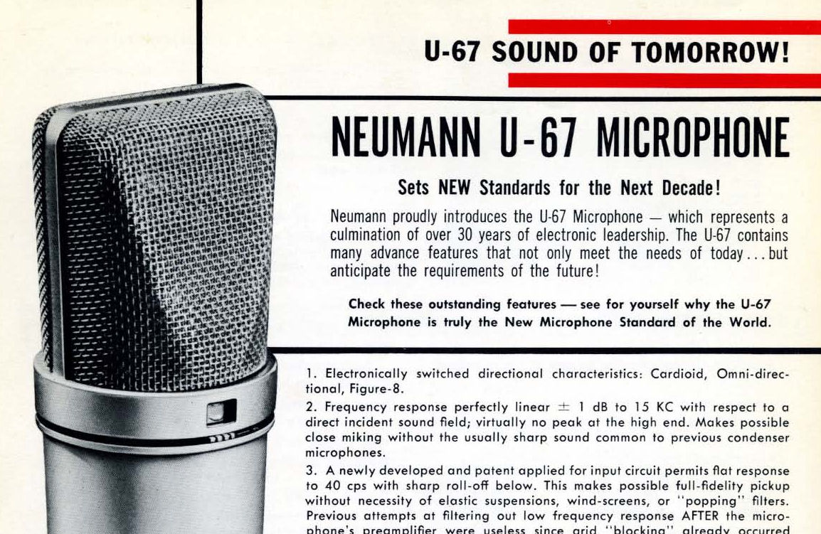2) A Neumann U 67 számos technológiai újítást vezetett be, köztük a kapcsolható iránykarakterisztikát és a mélyvágót.