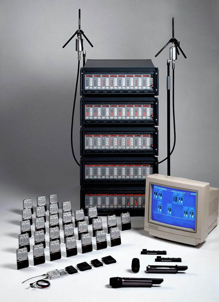 Az 1990-es évek elején a Sennheiser bemutatta a szintézer-technológiát használó új professzionális vezeték nélküli generációt. Az EM 1046 többcsatornás vevőegység, az SK 50 és SK 250 zsebadó, valamint az SKM 5000 kézimikrofon az akkoriban elérhető legjobb vezeték nélküli technológiát képviselte. Először használtak mikroprocesszort a vevőegység analóg funkcióinak figyelésére, a HiDyn plus kompander pedig tovább javította a zajcsökkentést. A látványosabb műsorokban (pl. az Eiger északi oldala megmászásának élő közvetítése során) Sennheiser vezeték nélküli rendszereket használtak.