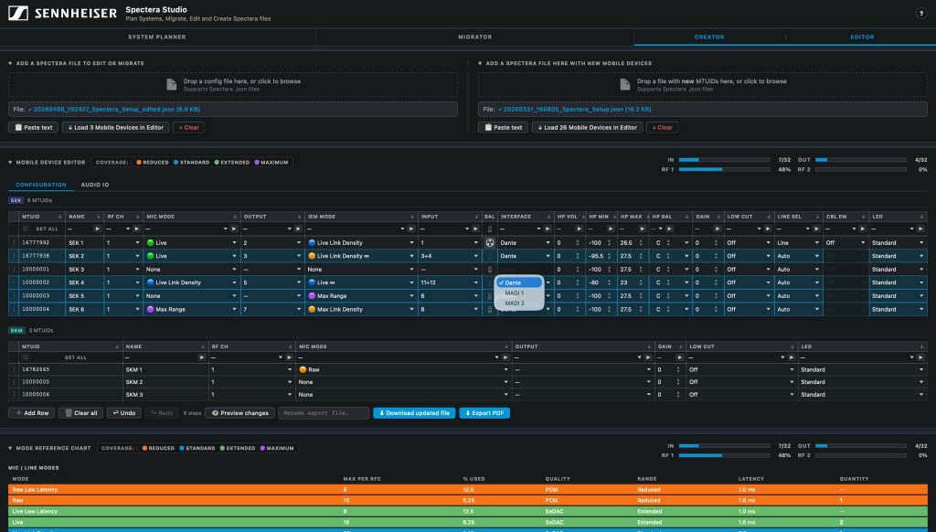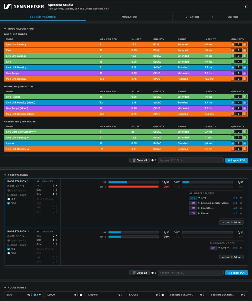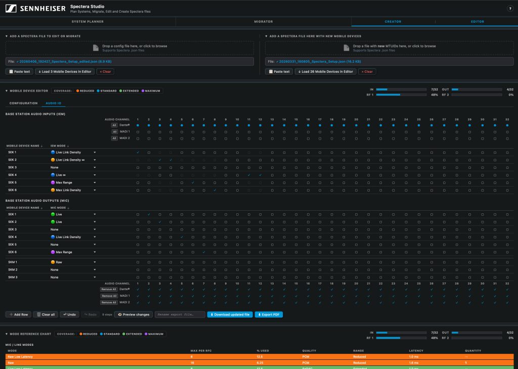 Már elérhető a Spectera Studio: a kétirányú, szélessávú vezeték nélküli ökoszisztémák kezelésére szolgáló új Sennheiser rendszertervező. A Spectera Studio segítséget nyújt a szakembereknek az előkészületi szakaszban, valamint a rendszerek két bevetés közötti újrakonfigurálása során. A szoftverrel a mérnökök teljeskörűen megtervezhetik Spectera rendszereiket, valamint áttelepíthetik és offline is szerkeszthetik a korábbi beállításokat – anélkül, hogy a konfiguráláshoz közvetlenül csatlakozniuk kellene a bázisállomáshoz.