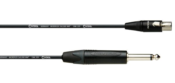 CORDIAL offers a reasonably priced, high quality alternative to the expensive original accessories offered by manufacturers of pocket transmitters – the 3-pin mini XLR to CPI 1 FP-PRT 3 plug instrument cable. Its features solid NEUTRIK NP2 plugs and REAN Mini-XLR connectors. Due to the very thin 0.088mm2 cross-section, CORDIAL’s Microflex CMK 209 is ideal for the intended purpose (suited for products by manufacturers Shure, AT, AKG, LD-Systems (3-pin), Beyer, T.Bone).